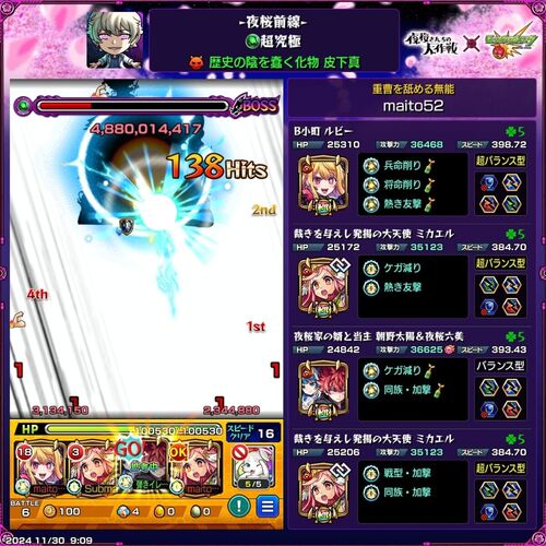 某モンスターなストライクの話。 追加超究極の夜桜戦線をクリアした。防御ダウンのシステムがクソゲーすぎて難しかった。 乱気弾がゆっくり飛んでいくのでめっちゃ嫌らしいわ。 紋章の防御ダウン無効とか付けて、ゴリ押しでなんとかなった。あとは、圧倒的に…